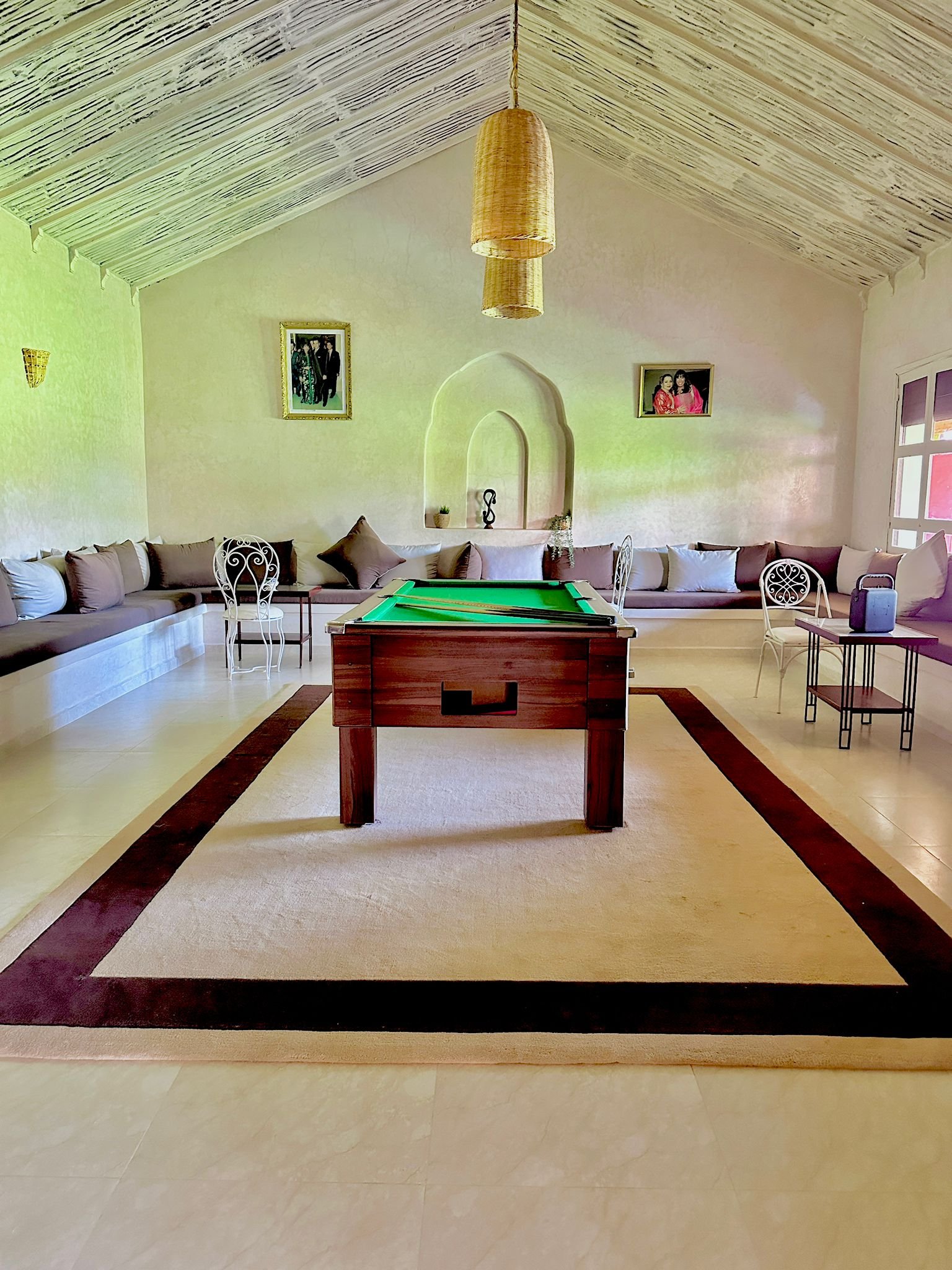 Piscine X m², transats, parasols, vue sur l’Atlas – accès privatif inclus